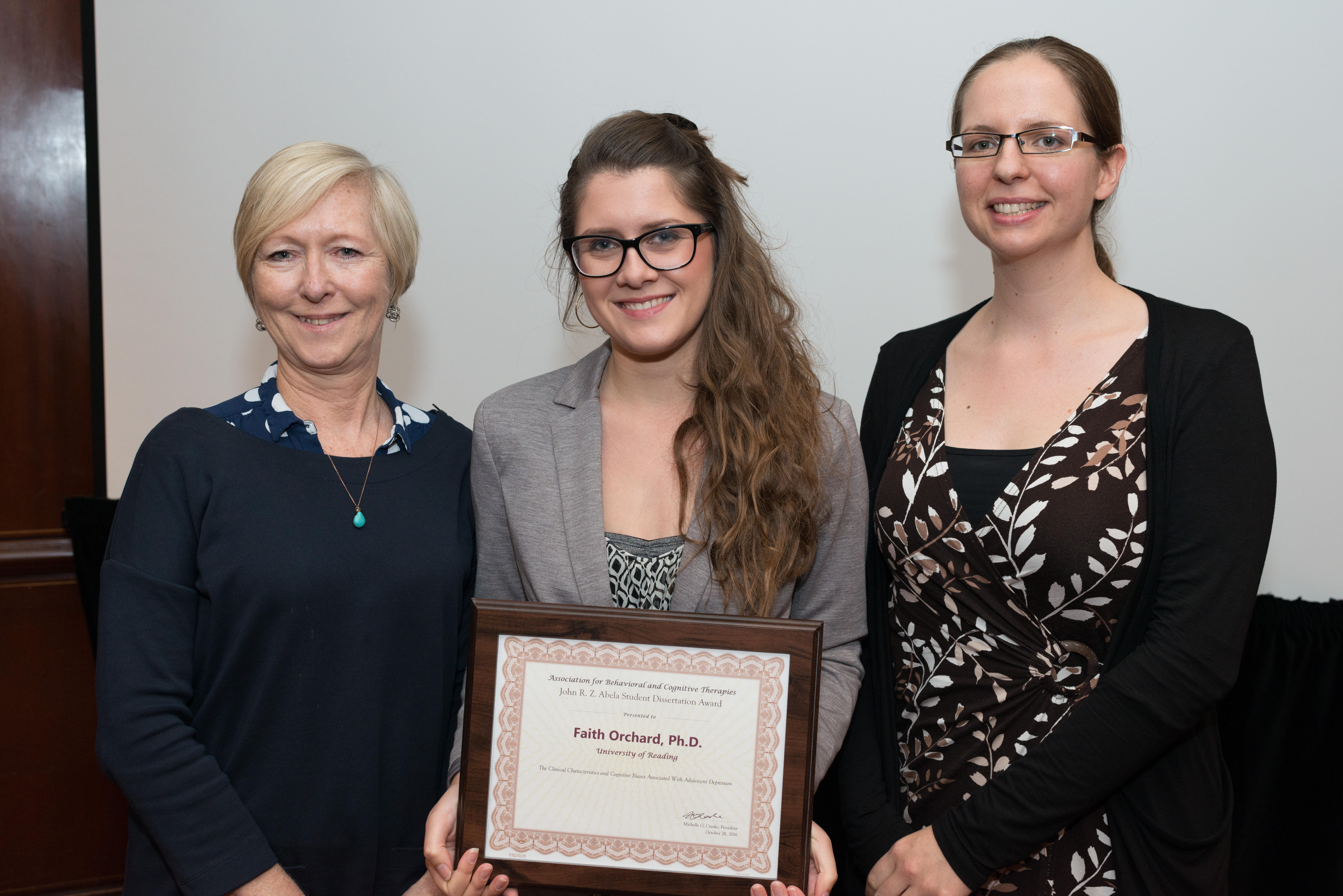 Last week, Shirley, Laura and Faith attended the 50th Association for Behavioral and Cognitive Therapies Convention in New York City. It was a great opportunity for AnDY to meet with colleagues from around the globe, as well as disseminating some of our brilliant research. Laura organised a symposium with a range of international colleagues to discuss the ongoing work on Behavioral Activation as a treatment for depression, at which she presented her exciting findings on developing adolescent-specific treatments. Whilst there, Faith received the John R. Z. Abela Dissertation Award for her doctoral thesis, as the only British award winner – a big congratulations! All in all, a very successful trip for the team!