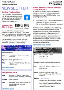 If you would like to subscribe to the Centre for Autism newsletter please email autism@reading.ac.uk