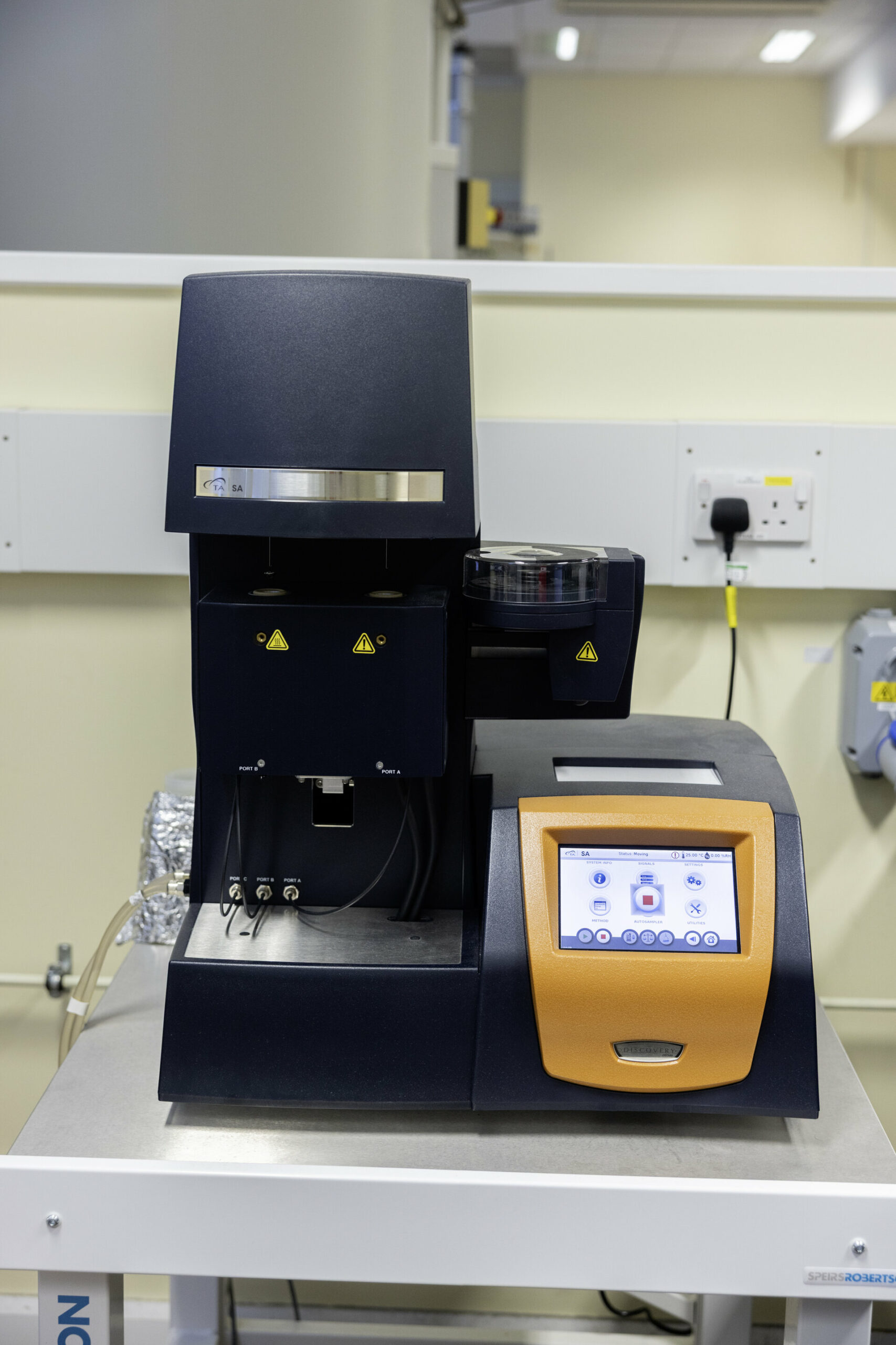 The Discovery SA Dynamic Vapour Sorption Analyser measures how materials take up and release moisture with exceptional precision, allowing researchers to characterise humidity-dependent behaviour quickly and reliably. It exposes samples to tightly controlled changes in relative humidity and temperature, tracking minute mass variations in real time. This enables detailed assessment of sorption–desorption isotherms, hygroscopicity, phase transitions, stability, and kinetic processes across a wide range of biological, food, polymeric, and pharmaceutical materials—supporting both routine quality control and advanced research within the analytical facility.