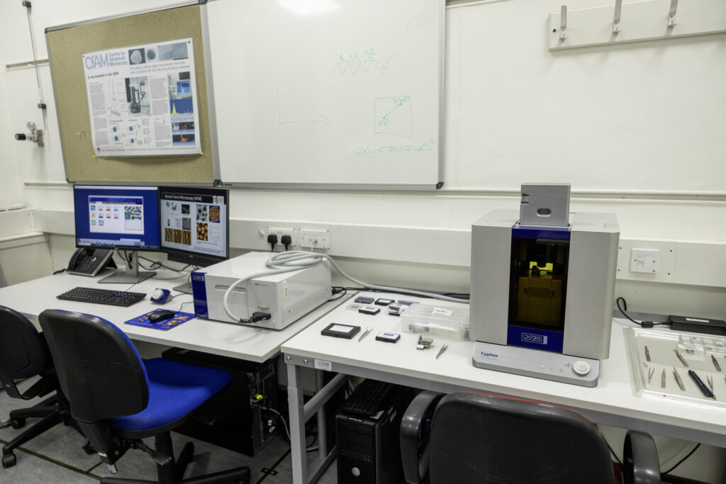 Asylum Research Cypher S Biological and material applications Operates in air and liquids High resolution topographic imaging Material properties e.g. elasticity, adhesion