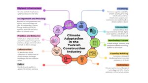The workshop outputs emphasize the need for a holistic and cross-sectoral approach that aligns climate adaptation actions with broader national strategies while addressing the specific vulnerabilities and capabilities of the construction industry. The vulnerabilities within the built environment are found to stem from lack of governance systems, including knowledge, data and regulations for climate risk-informed decision-making. By embedding climate resilience into sectoral planning to minimize vulnerabilities, exposure and impact, Turkish construction industry can play a proactive role in safeguarding the built environment, reducing future costs and losses due to climate change, and enabling sustainable and climate resilient development.