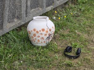 In the next phase of the project, community members were equipped with recoding tools such as mobile phones, contact microphones, and field recorders, to collect ambient and personal soundscapes. These sounds came from both everyday environments – radiators, boiling kettles, roadworks – and more imaginative or symbolic sources, such as decommissioned phone boxes, or the clay of Lousehill Copse, which had been dug and then shaped into a sound vessel. The sound vessel itself is a ceramic sculpture created by 57 pairs of hands from across the community, which embodied the tactile, communal spirit of the project and physically captured the wind and the voice of the estate.