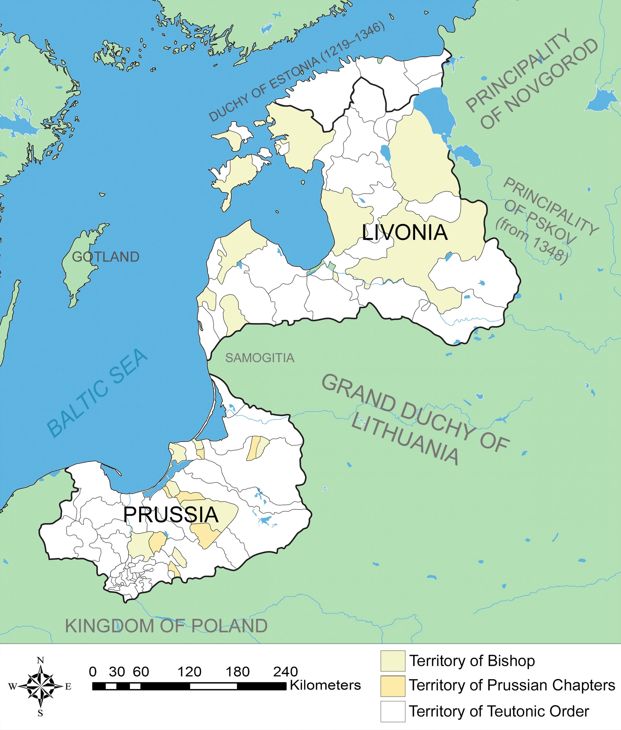 From the late 12th century and throughout much of the 13th century, crusading armies unleashed a relentless holy war against the native societies of the eastern Baltic, defined as threatening ‘pagans’ by their Christian neighbours. The conquered territories were reorganised as Catholic polities called Livonia and Prussia, largely governed by a militarised theocracy, consisting of the Teutonic Order, bishops and their cathedral chapters. They constructed imposing fortified monasteries, encouraged migrants to settle in newly established towns and, in some regions, populate the countryside. They also imposed Latin Christianity on the conquered societies. To sustain its political and military assets, the theocracy intensified the exploitation of natural resources within its domains. At a time of deteriorating climate, their impact on the local environment, especially plants and animals, would have been profound. Since many aspects of the natural world were sacred to the native societies of the eastern Baltic, this impact would be synonymous with the cultural changes that created a new world – a European world – at this frontier of Christendom. Throughout the 14th century, the dominant theocratic authority, the Teutonic Order, led countless military campaigns against Lithuania, which remained defiantly independent and pagan until its Grand Duke converted to Catholicism following a political union with Poland. Knights from all over Europe participated in these campaigns and many did not return from the frontier. The Order’s rule endured until the 16th century when its Baltic branches were secularised and became vassals of Poland and Lithuania. The eastern Baltic would remain the focus of brutal power struggles between rival states into the 20th century.