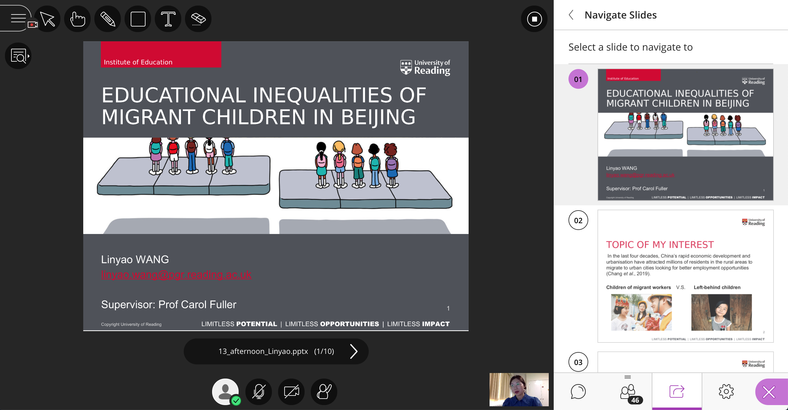 The day then continued with seven research presentations by staff and students in the morning and further seven presentations in the afternoon. The presentations reflected a wide range of fascinating educational research topics being investigated here at the IoE. During lunchtime, our conference delegates also had an opportunity to explore six pre-recorded presentations by PGR students, who due to work commitments or due to living in a different time zone, were unable to participate in the conference in real time. Screen recordings of the different parts of the conference were made and shared internally with members of the IoE community.