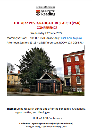 This blog post is written by the Institute of Education’s (IoE) 2022 Postgraduate Research Conference Organising Committee which is made up of IoE doctoral students (Xiaobo Li, Hongyan Zhang and Xingrong Chen) and supported by Dr. Billy Wong (Deputy Director of the IoE’s Postgraduate Research Studies).