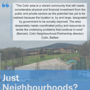 “The Colin area is a vibrant community that still needs considerable physical and financial investment from the public and private sectors as the potential has yet to be realised because the location is, by and large, designated by government to be socially deprived. The area desperately needs coordinated policy and resources to tackle the underlying problems that continue to exist”