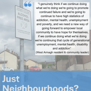 “Key points that could solve problems straight away and improve quality of life was a new model of tackling low-level crime. Designated addiction services and health villages in our communities, investment in community hubs, having services running through them. Partnership working with volunteers. Compulsory community events in each community. Enabling the community to come up with their own solutions and investment in green spaces and nature…. We need to do something. We are the second most deprived in the country. If we get the smaller things right, we can help the community to engage and activate them to find the solutions themselves to address the issues they face.”