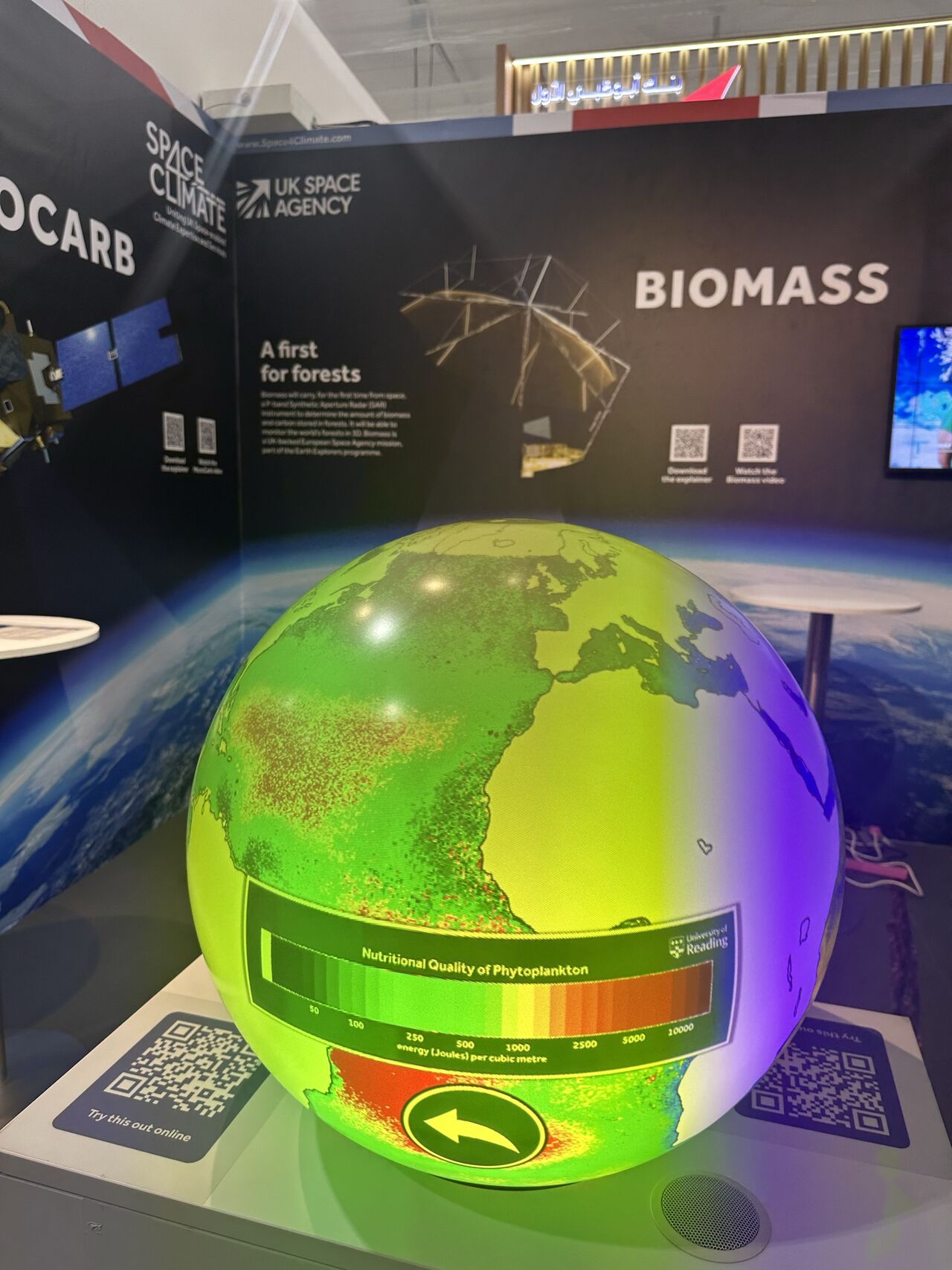 MarES research at the University of Reading is on display at the Space4Climate stand in the Space Pavilion, in the Technology & Innovation Hub in the Green Zone COP28, showcasing nutritional quality of oceanic phytoplankton derived from Earth observation satellites. Advanced ocean observation from space can shape climate change mitigation and adaptation strategies.