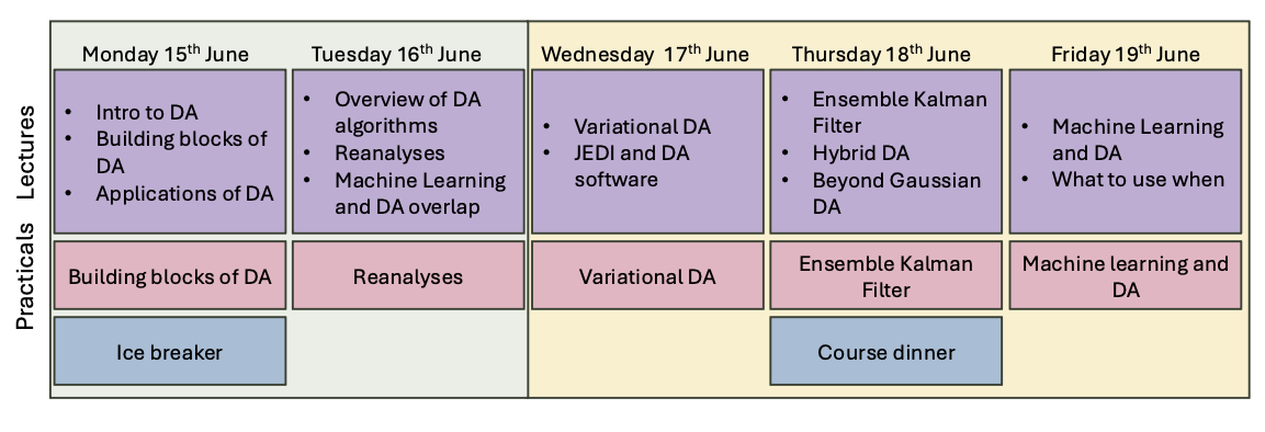 Within this course, you will learn how Data Assimilation (DA) offers practical methods, underpinned by mathematical theory, to integrate numerical models and large observational datasets. This year, the course will be separated into two stages. The first stage will have an emphasis on applications and the well-informed use of reanalysis products. In the second stage, we will allow more time to explore the mathematics of DA theory and algorithms and dive deeper into the relevant Machine Learning concepts. The two parts of the course can be taken consecutively or separately, depending on the student’s background and goals.