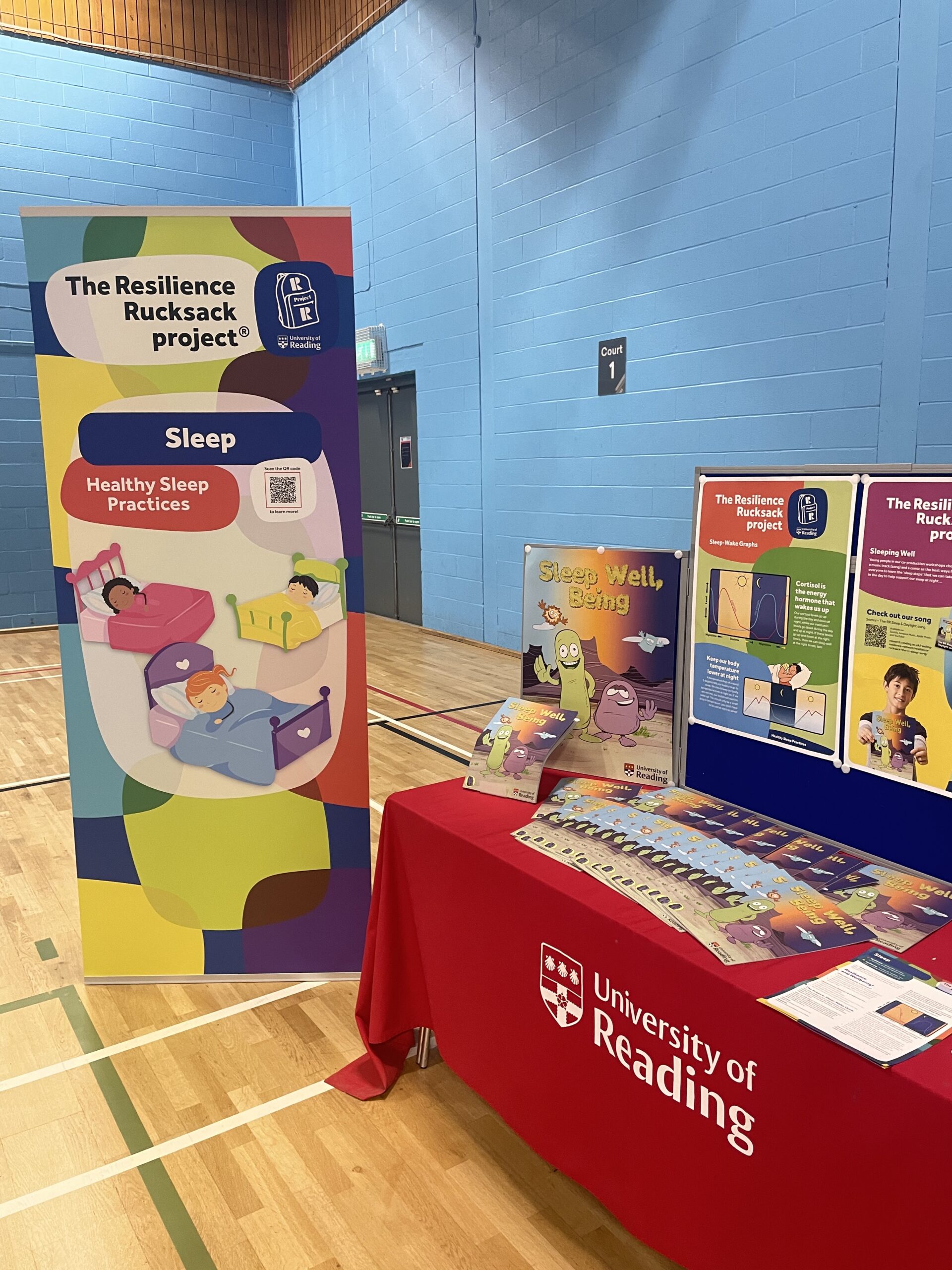 Then the pupils visit four different booths in rotation. These booths represent the central themes of this research, the Sleep Booth, Movement Booth, Friendship Booth, and Self-Compassion Booth. At each booth, a member of our team gives a short presentation on how the theme impacts resilience and wellbeing, the science behind these, and how the wellbeing tools can be used.